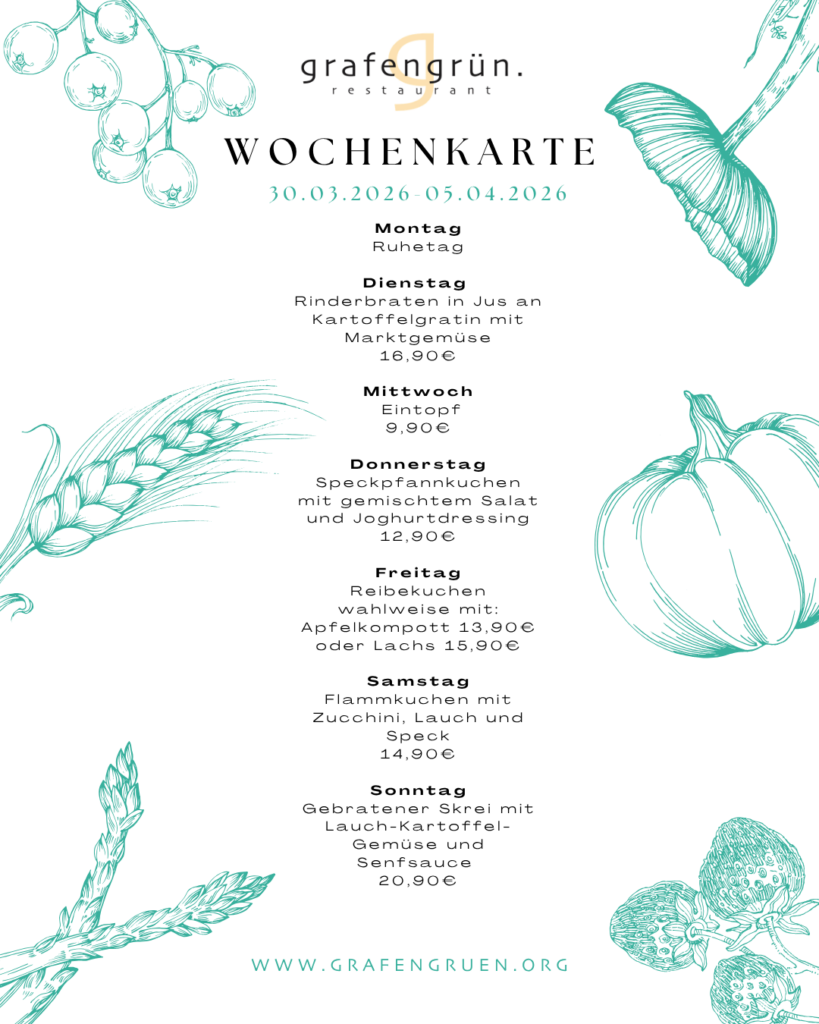Mittagskarte Restaurant Grafengrün 30.03 – 05.04.26